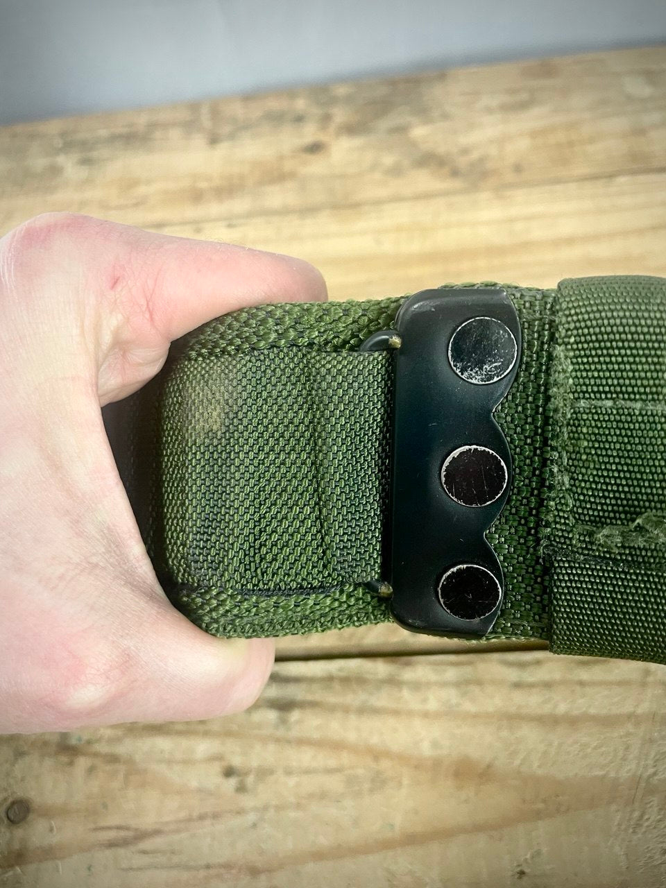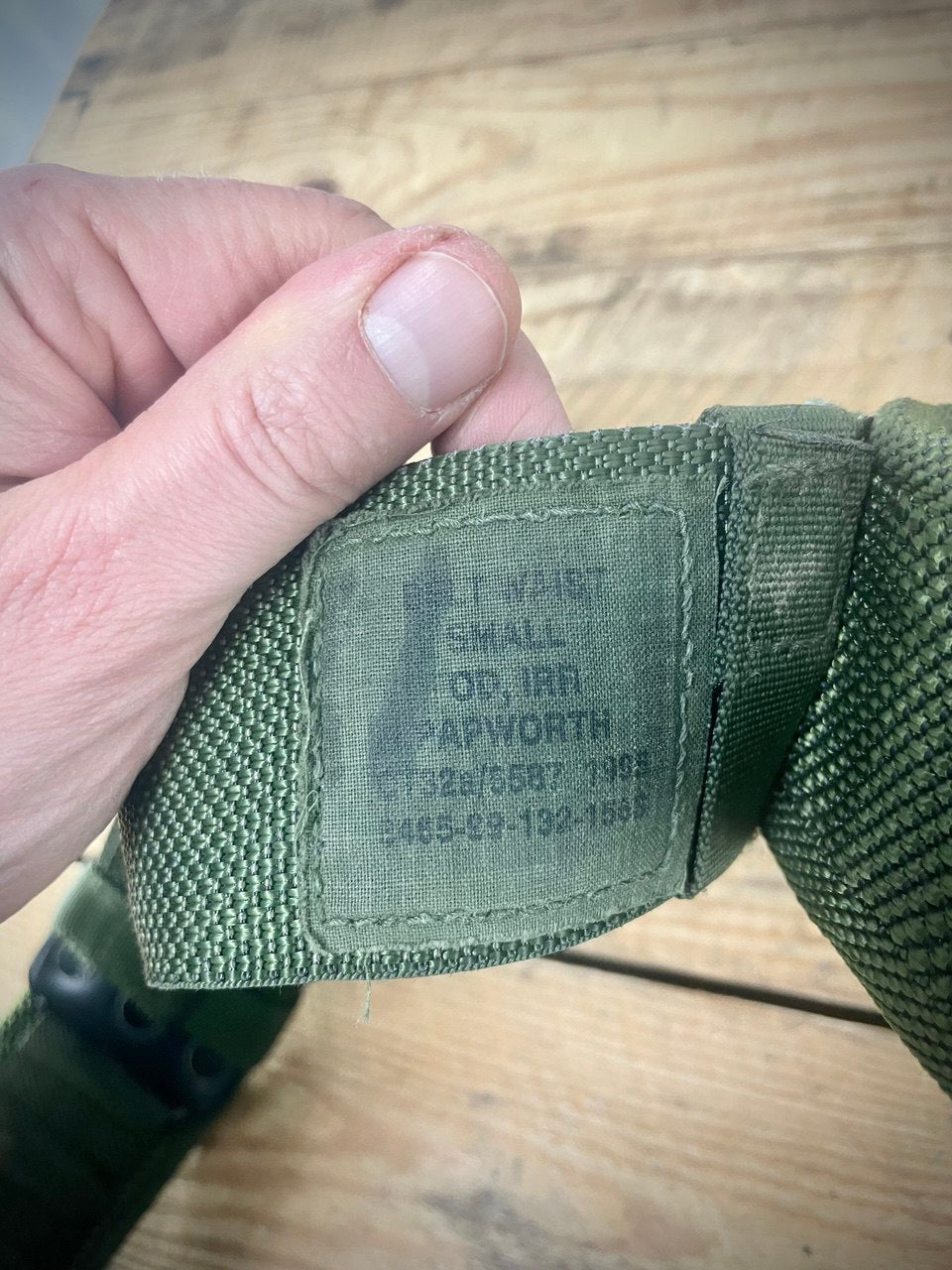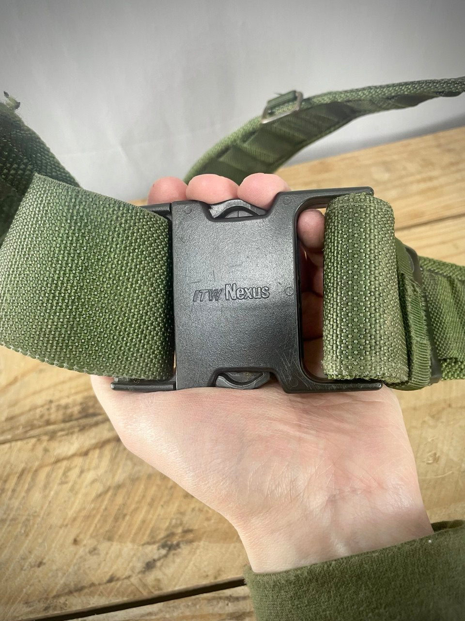 Saakelin jämäkästä nailonista valmistettu vyö, jonka ensisijainen tarkoitus on kannatella taisteluvarustusta. Ehtaa brittiarmeijan ylijäämää ja osa perienglantilaista PLCE-järjestelmää.