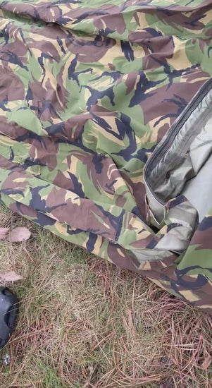 DPM-maastokuvioitu, tilava bivy-pussukka Hollannin armeijan tavarana. Kaikista majoitteista kompaktein - kuitenkin niin että pysyt säältä suojassa! Käytettyä mutta oikein nättikuntoista ylijäämää.