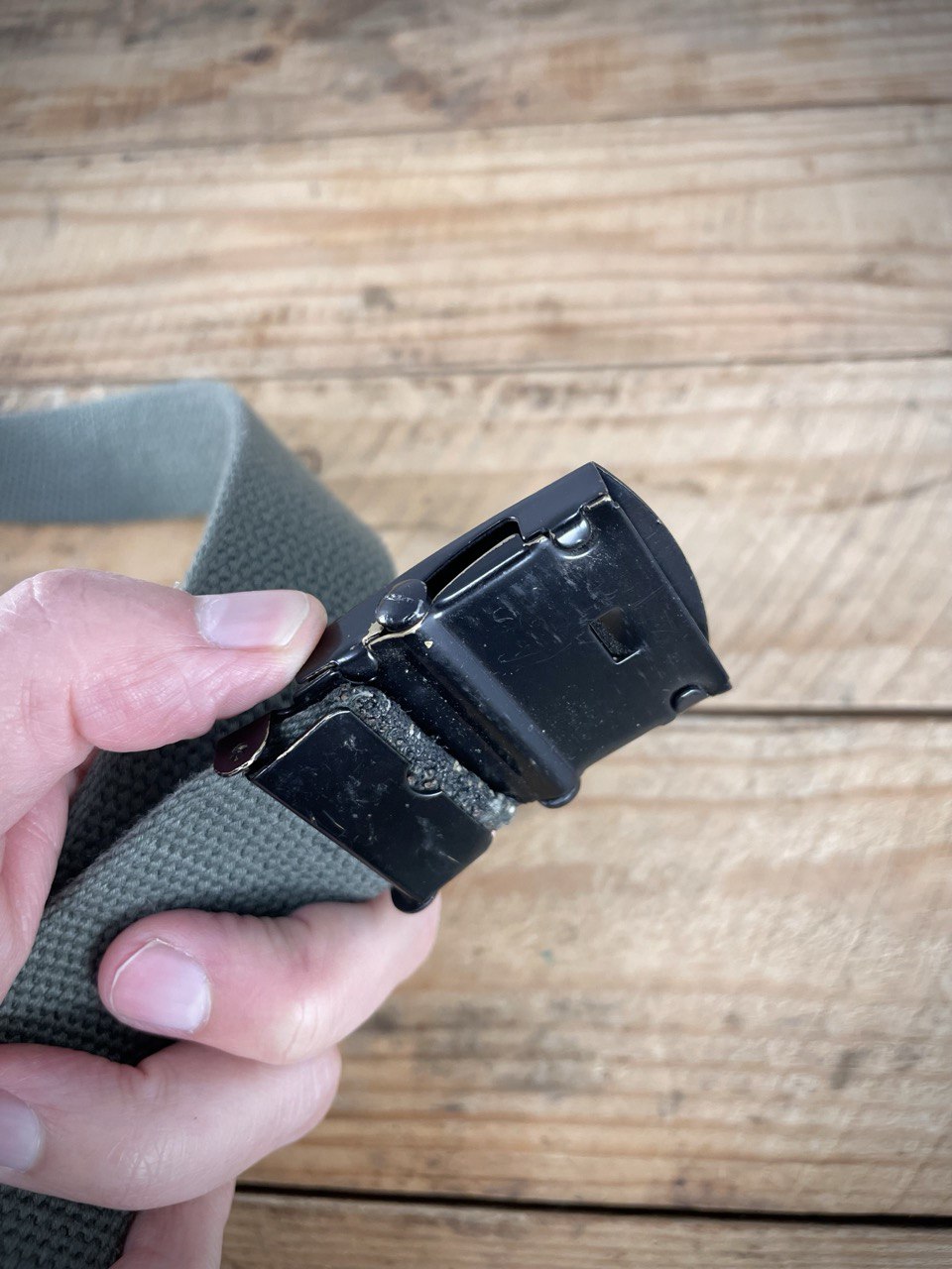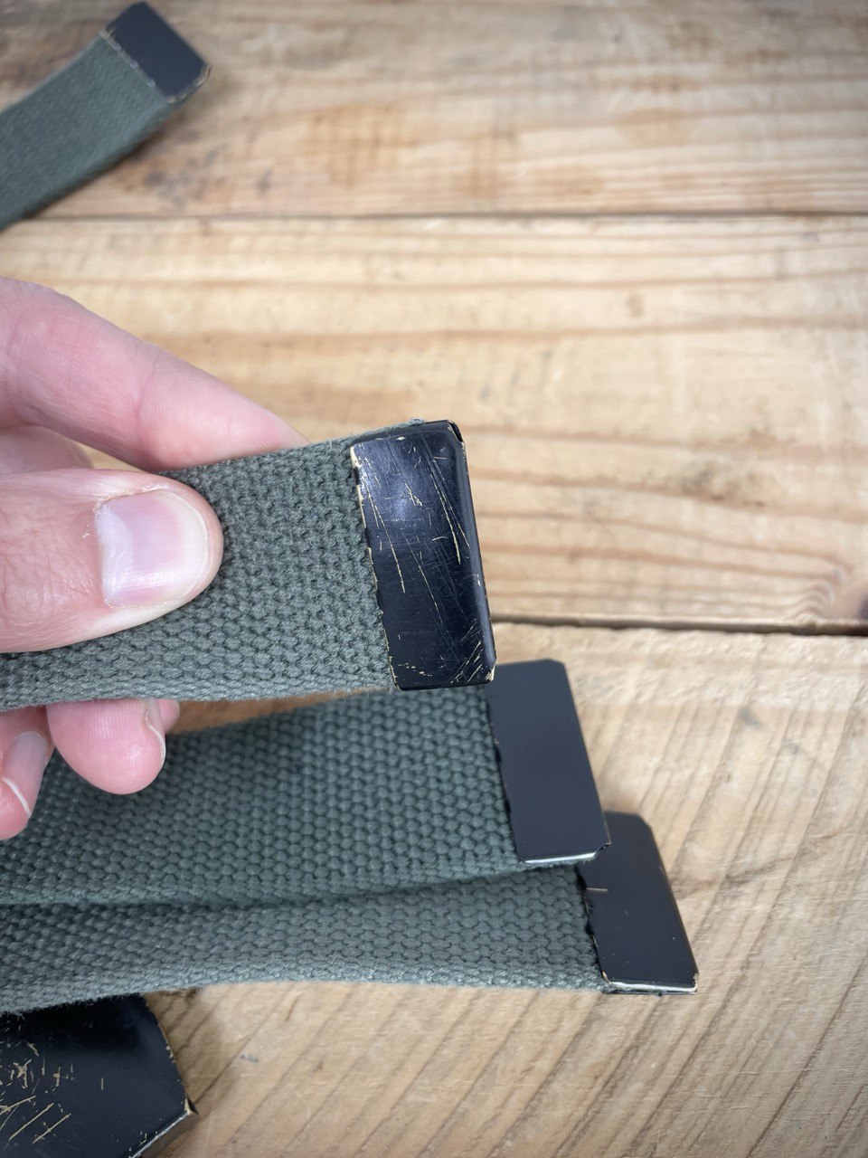 Hyvinkin perinteinen armeijan housuvyö. Samanlaisiahan saa siviilivalmisteena ympäri ämpäri, vaan ne ovat laadultaan usein susipaskoja ja kuluvat rikki nopeasti. Nämä sen sijaan ovat tuhtia, kunnollista käyttötavaraa, vaikkei hinnasta uskoisi.