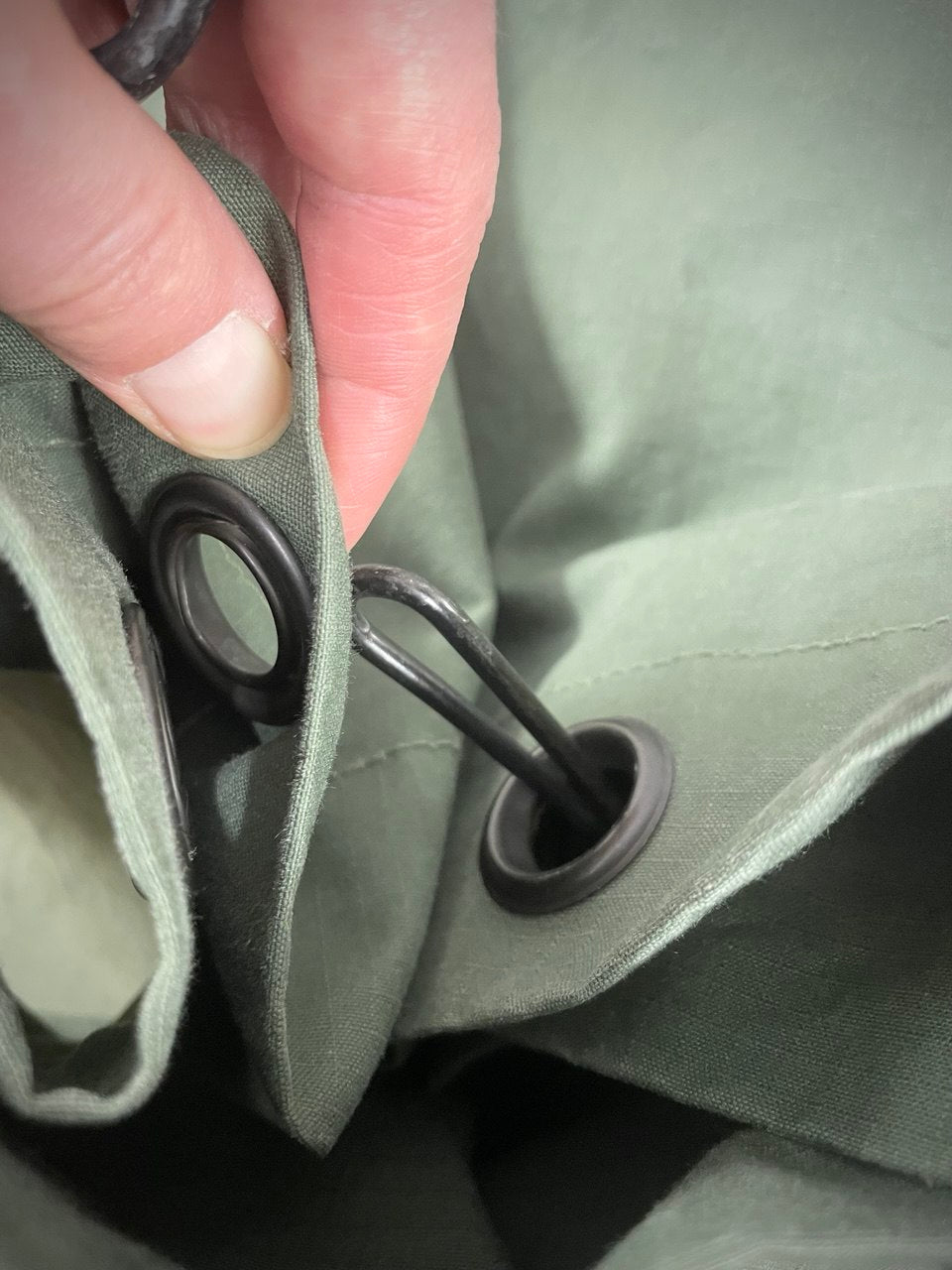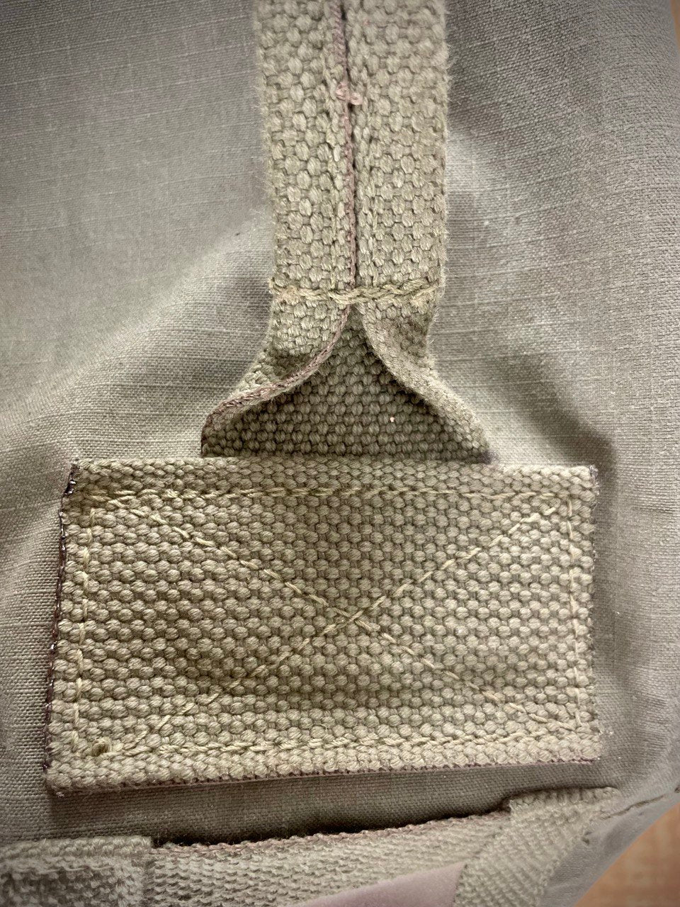 Kangas näissä on puuvillaa, tai todennäköisemmin puuvillan ja jonkun keinokuidun sekoitusta. Kuten arvata saattaa, on tämä aina kovin tymäkkää tavaraa, merimiessäkkejä kun ei mistään lakanakankaista pruukata valmistaa. Värisävy ja kankaan tyyli vaihtelevat vähän säkistä säkkiin, osa ripstoppia, osa ei. Kaikki toimivat ihan yhtä hyvin.