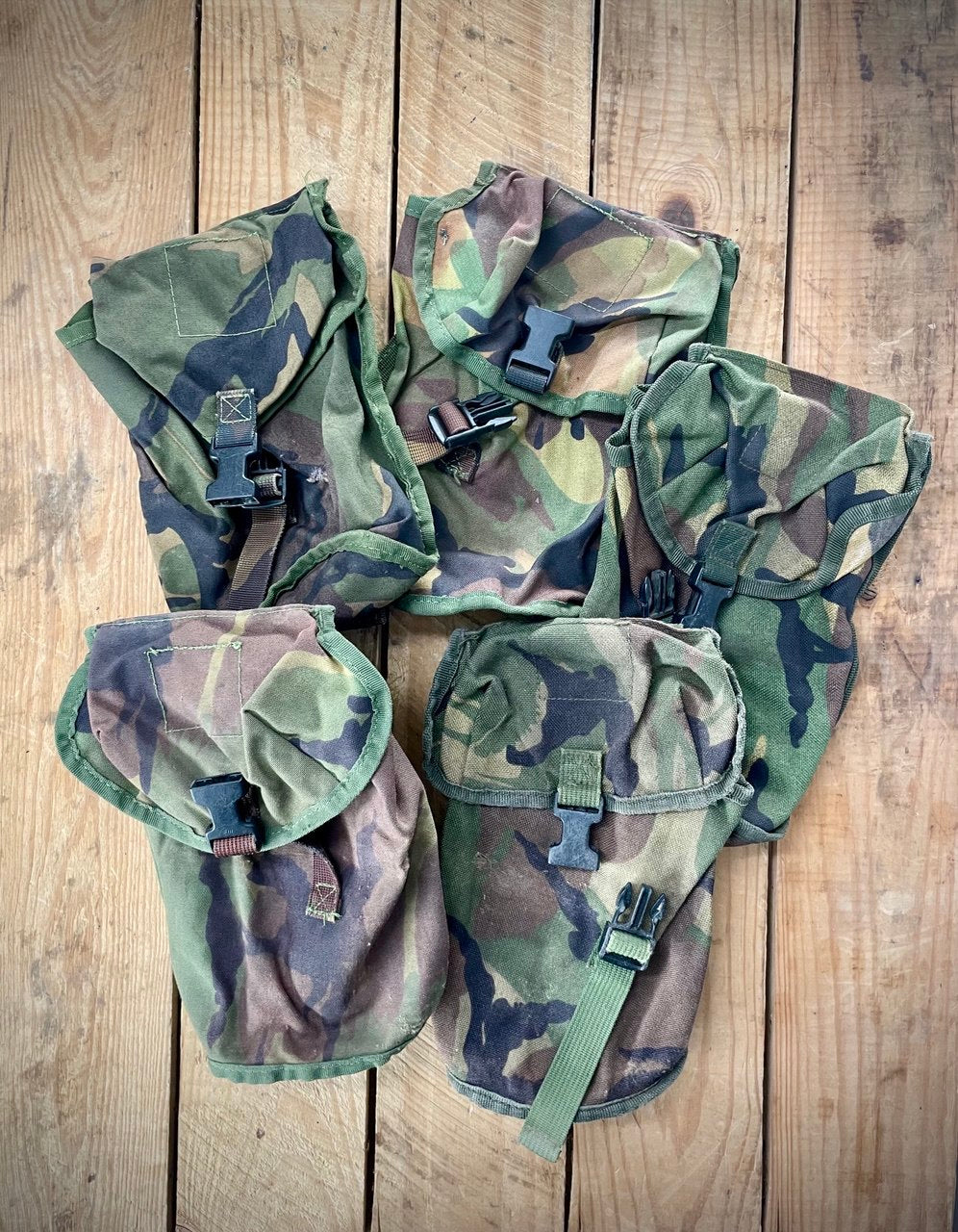 Nämä tulevat minulla DPM-kuvioituina, mutta seassa on joskus Woodland-kuvioituja taskuja, jotka ovat visiin merijalkaväen mallia. Nämä myydään erikseen koska sillä on varmaan jollekulle väliä. Ylläolevassa kuvassa Woodland.