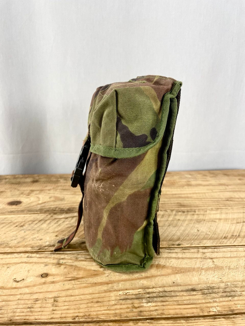 Kenttäpullonmentävä yleistasku, toimii myös yleistaskuna. Sopii tuomaan lisätilaa rinkkaan ja ylipäätään killuu mukavasti matkassa kaikessa PALS-vuoratussa. Saapa tämän toki vyöllekin. Käytettyä armeijaylijäämää Alankomaista.