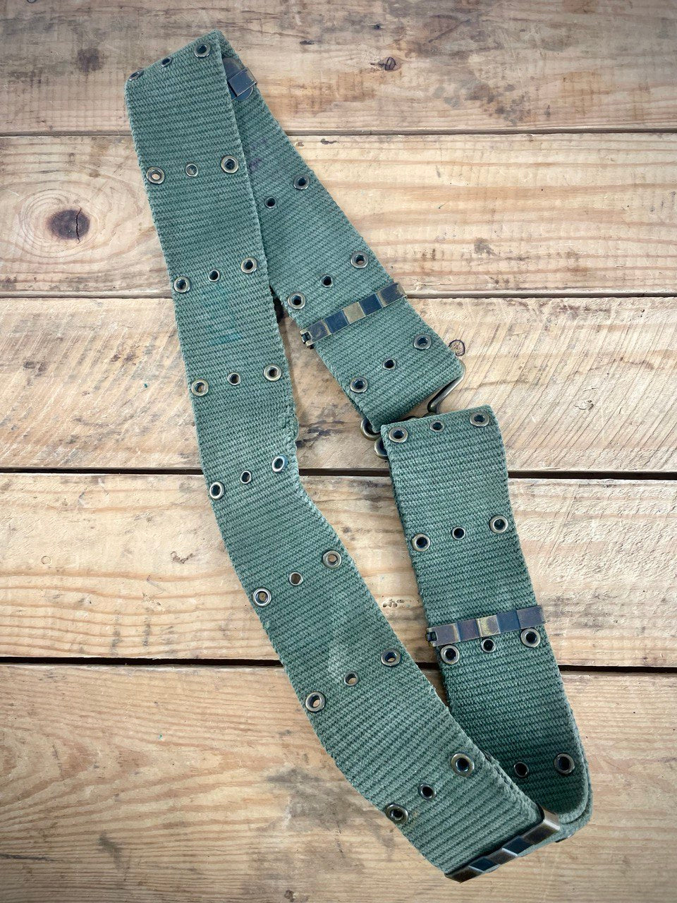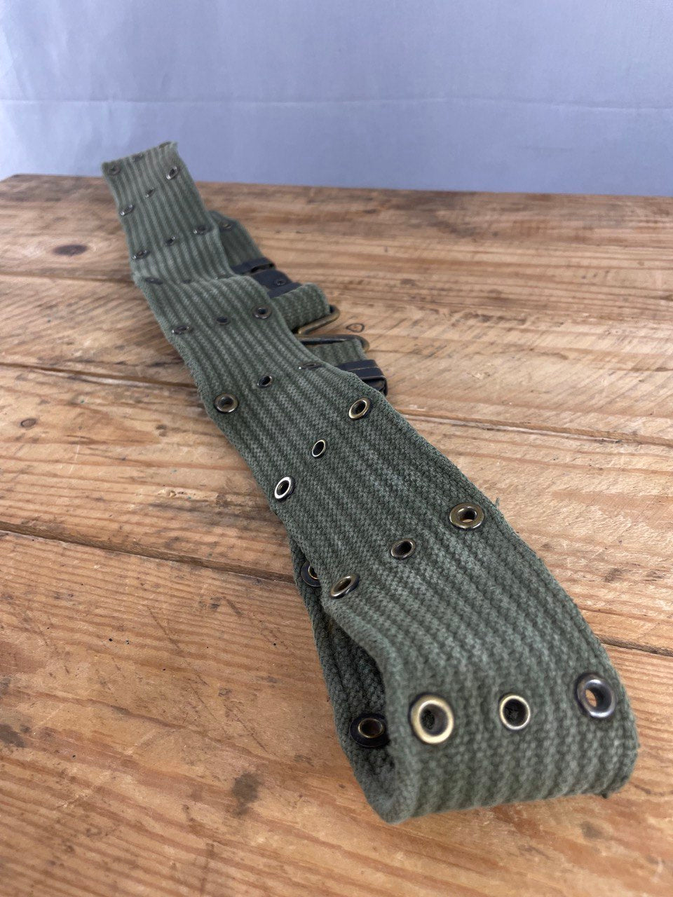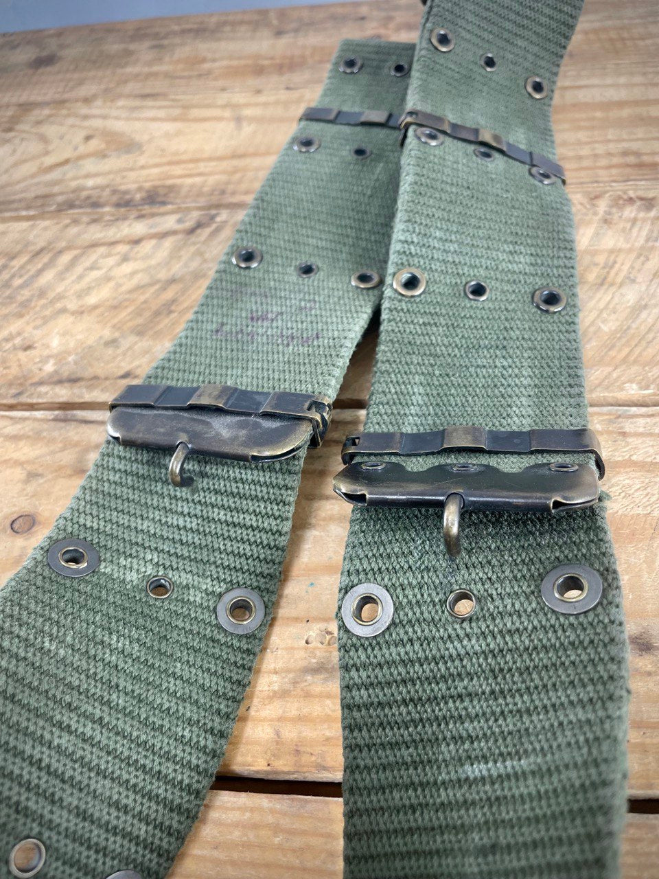 Käytettyjä M56-järjestelmän vöitä. Ihan kuin tokassa maailmansodassa käytetty malli, mutta kivemmalla soljella ja pituussäädöt löytyvät kummaltakin puolelta. Kahta pituutta, kahta eri vuosimallia, M56 ja uudistettu M61.