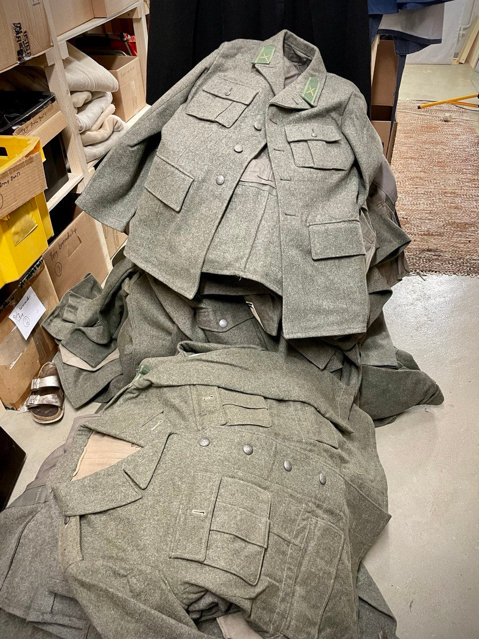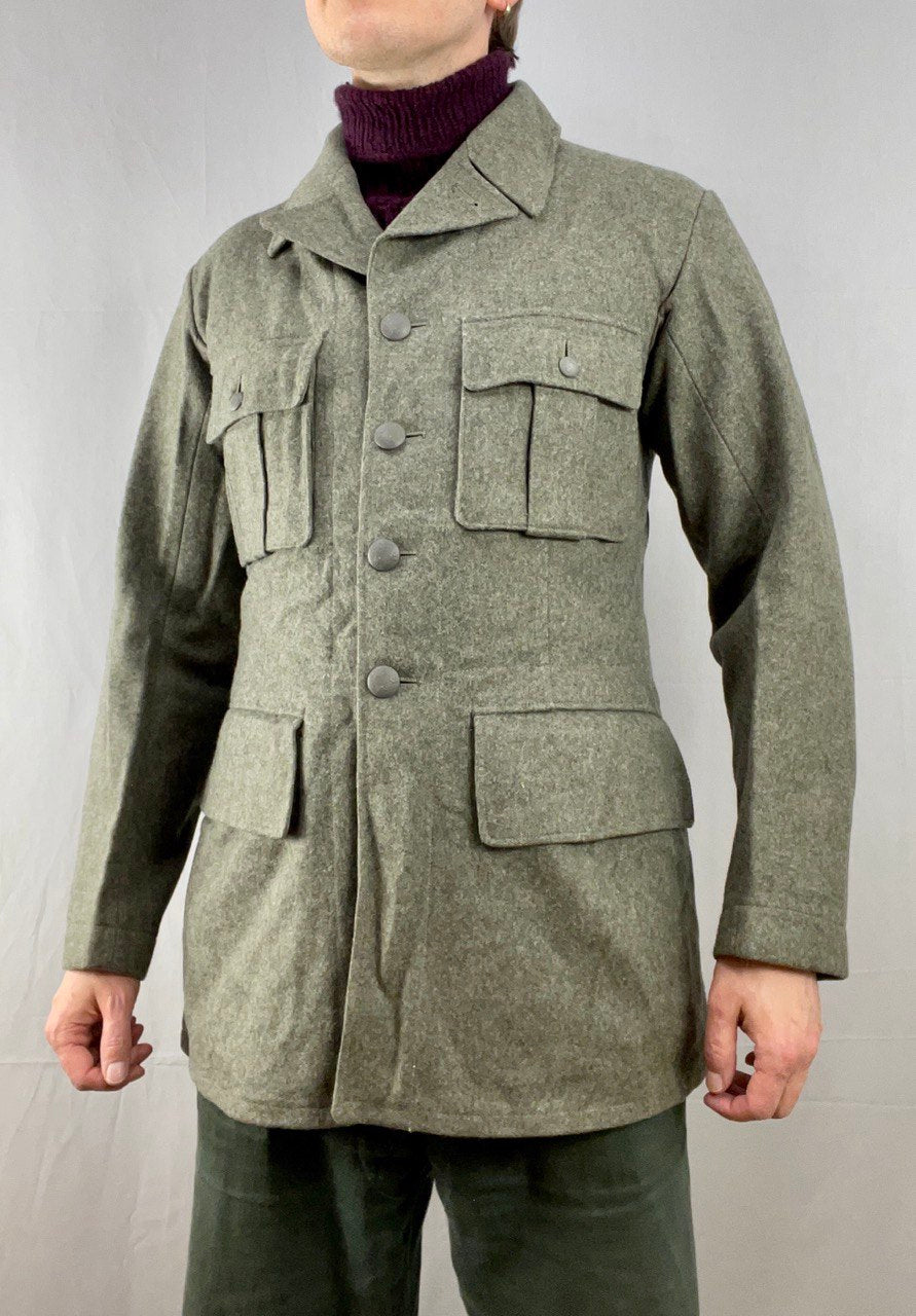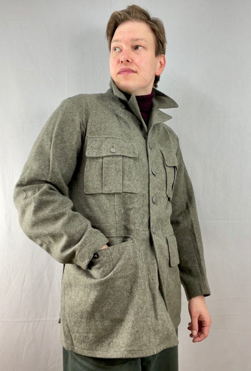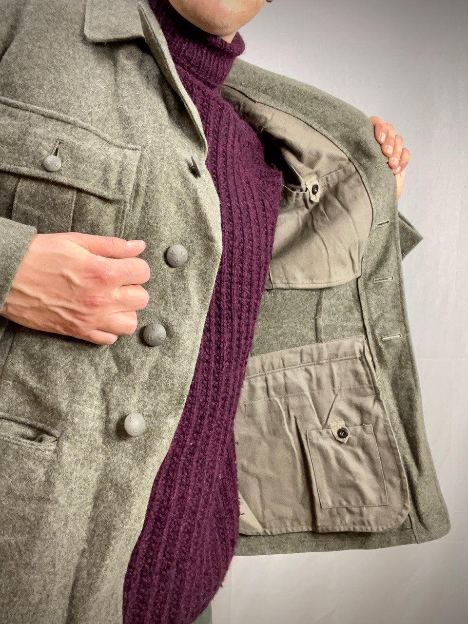 Nämä ovat todella nätissä kunnossa. Osa niistä on käytettyjä, osa jopa käyttämättömiä, mutta kaikki ovat erinomaisessa käyttökunnossa. Suosittelemme kuitenkin tuulettamaan takin ennen käyttöä, sillä 40-luvulla tehty vaate, joka on olut varastoituna vuosikymmeniä, ei voi olla täysin hajuton ja mauton (sarkakankaassa toki aina ominaistuoksunsa, villaa kun on).