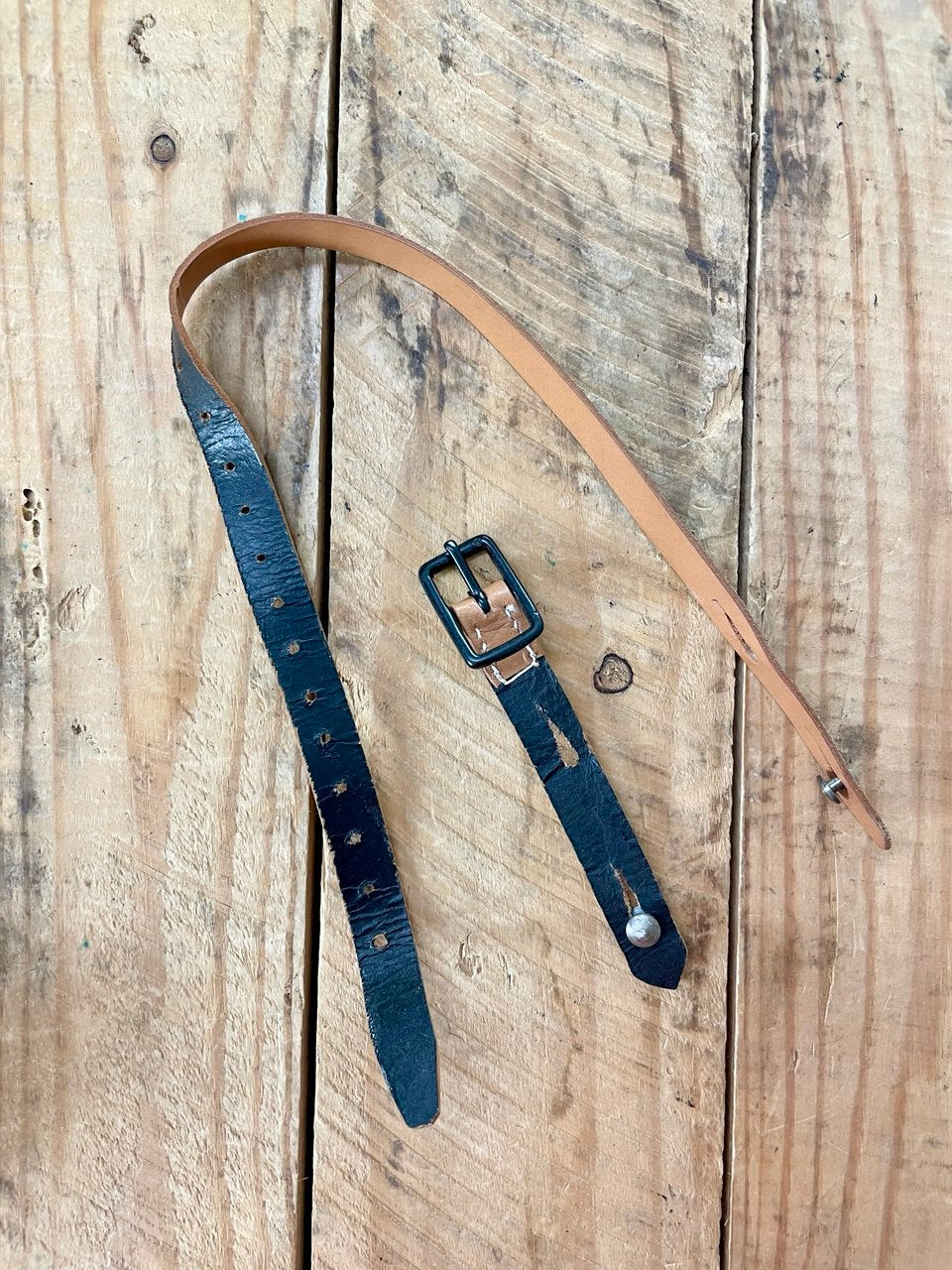 Nahkainen kypärän leukahihna. Tarkoitettu virallisesti M35, M42 yms. sota-ajan hiilisankoihin, mutta menee vaikka mihin pottaan josta vaan löytyvät sopivat metalliset D-renkaat kiinnitystä varten. Vain pari kappaletta, nappaa tästä pottaasi vaikka varahihna.