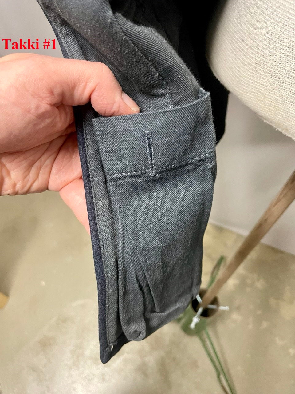 Nämä ovat siis villakangasta, ihan oikeata sarkaa, ja niiden historiallisen luonteen vuoksi en suosittele konepesua, vaikka takki varmasti villapesun kestääkin. Jos haluat takista tuoreen, käy mielummin pesulassa neuvottelemassa kuivapesusta. Takki on kuitenkin sellaisenaan aika hyvä, eikä kaipaa mitään sekoilua.