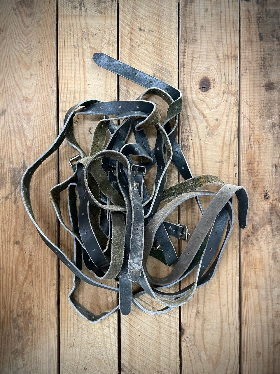 Usein käytettyjä, mutta aina käyttökelpoisia tarkoitukseensa. Hihnoissa on normaalin käytönjäljen lisäksi aika usein jotain varastointijälkeä (tahraa, vähän pintaruostetta jossain kohtaa) tottakai. Ei mitään uutta ylijäämäauringon alla. Hyvä remmi, nappaa mukaan.