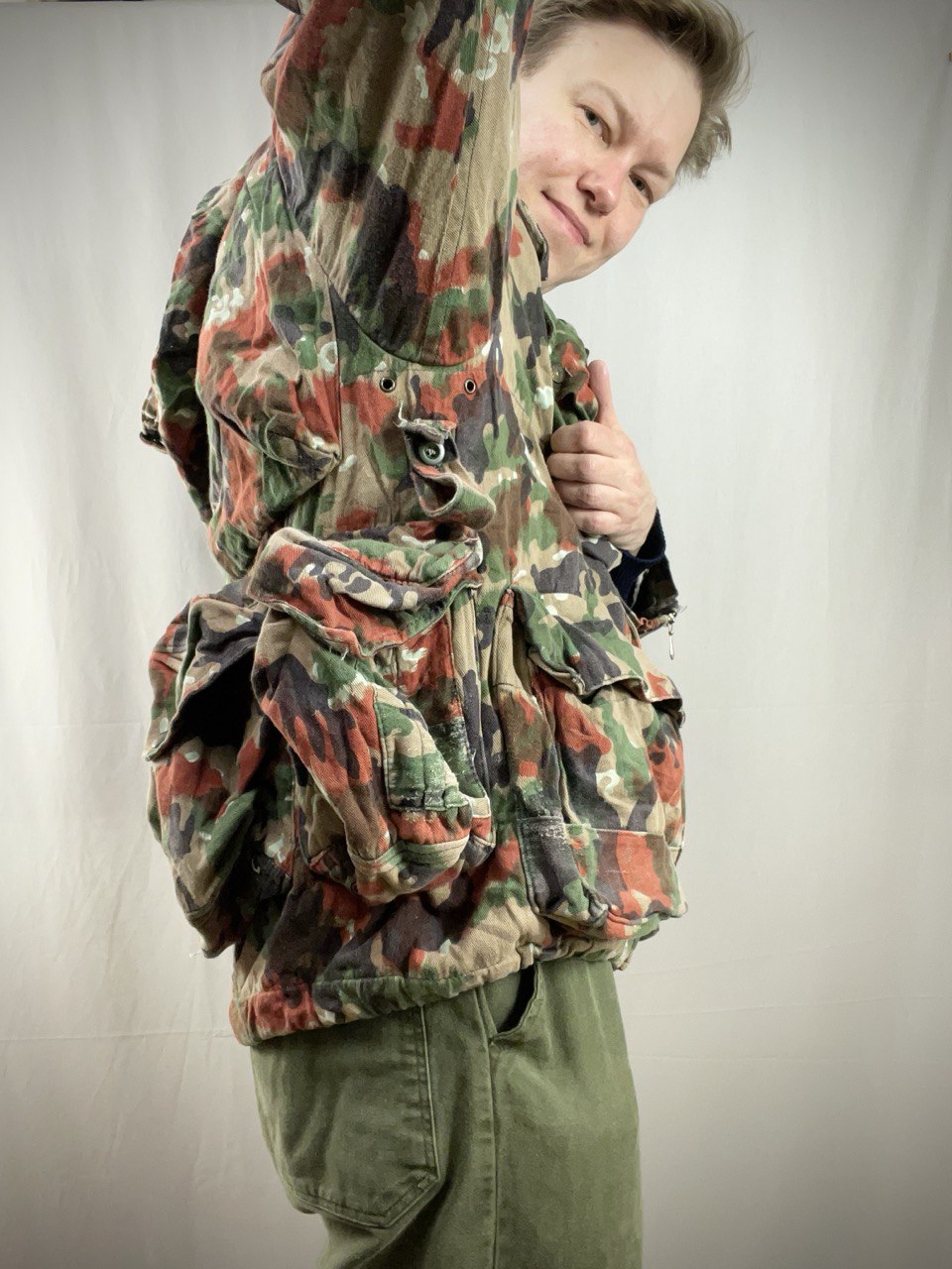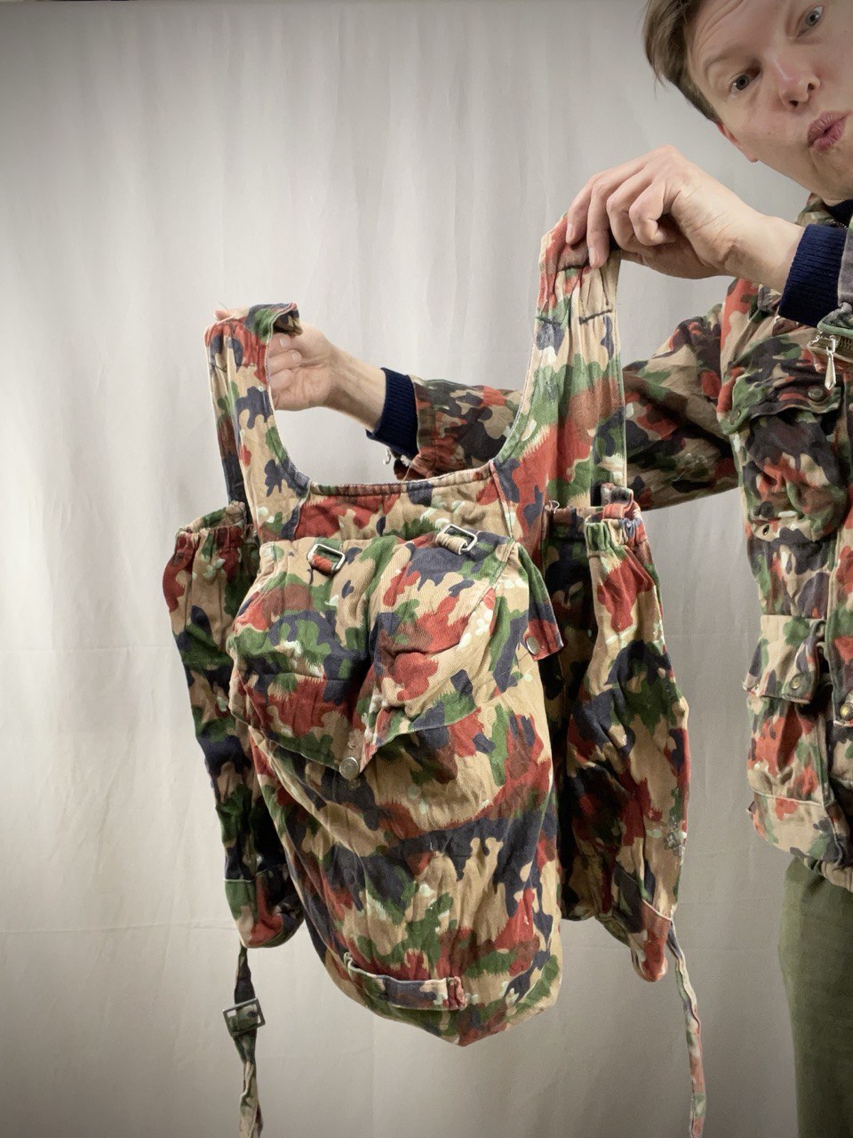 Sveitsissä järjenjuoksu oli aikoinaan ihan omanlaistaan, kuten vaikkapa tästä tuotteesta ilmenee; keksittiin, että sotilaan takki on myös hänen ensisijainen taistelukantolaitteensa. Lopputulos on LEGENDAARINEN, eli hupullinen parka, jossa on paitsi huikea kuosi, myös valtavasti kantokapasiteettia. Mukaan takkiin kiinnittyvä reppu!