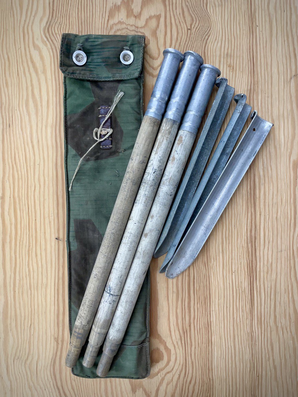 Sveitsissä keksittiin joskus sotavuosina telttavälinesarja, jota sitten valmistettiin käytännössä sellaisenaan jonnekin 90-luvulle asti ainakin. Tarkoitettu teltanpuolikkaalle, koostuu pitkulaisesta pussista, kolmesta kepistä ja kolmesta kiilasta.