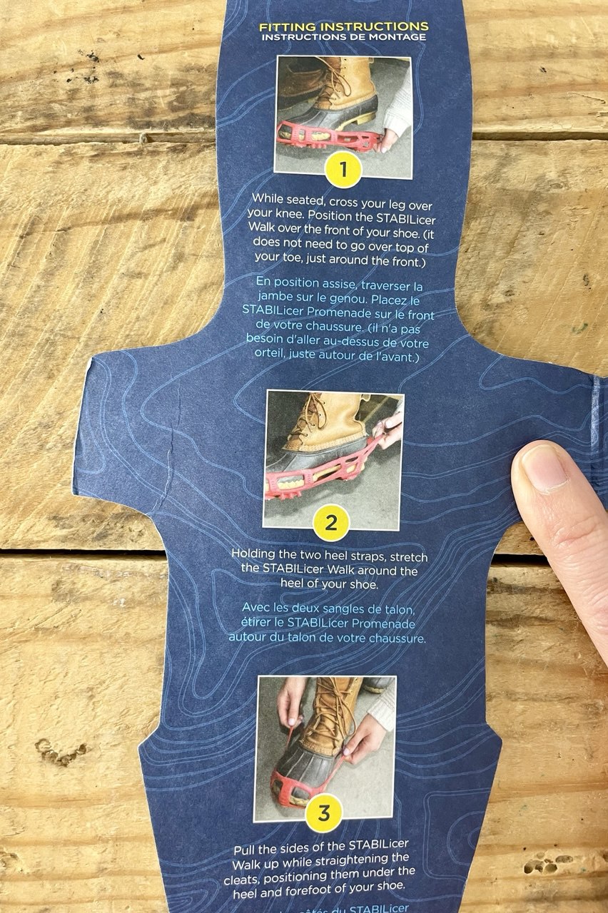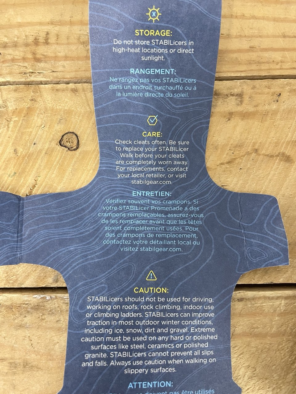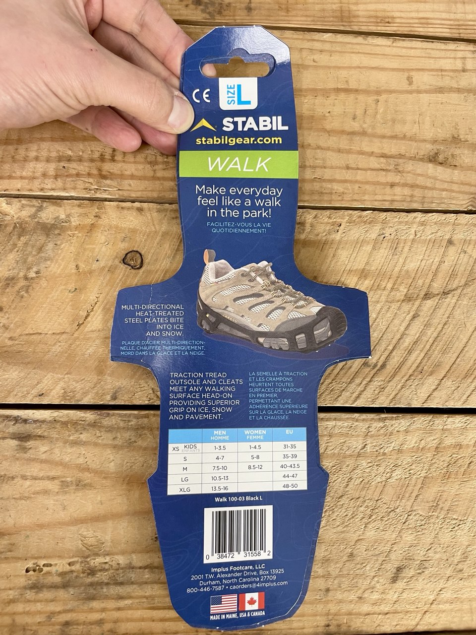 Koot menevät virallisesti alla olevan hienon taulukon osoittamalla tavalla, mutta kuten yleensä liukuesteiden kanssa, ovat nähdäkseni maiharityylisiin kenkiin ja etenkin talvikenkiin aika nafteja. Ottamalla oman kokosi saat liukuesteet "normaalin" lenkkarikengän yli mukavasti, mutta suosittelen varovaisesti ehkä kokoa isompaa jos ajattelit näitä vaikkapa vaelluskenkien kanssa käyttää. Kuvan nahkaiset sotilaskengät ovat kokoa 41 ja niissä on koon Large liukuesteet.