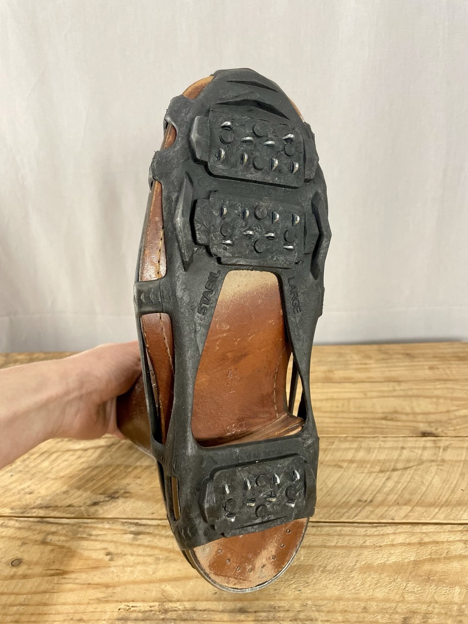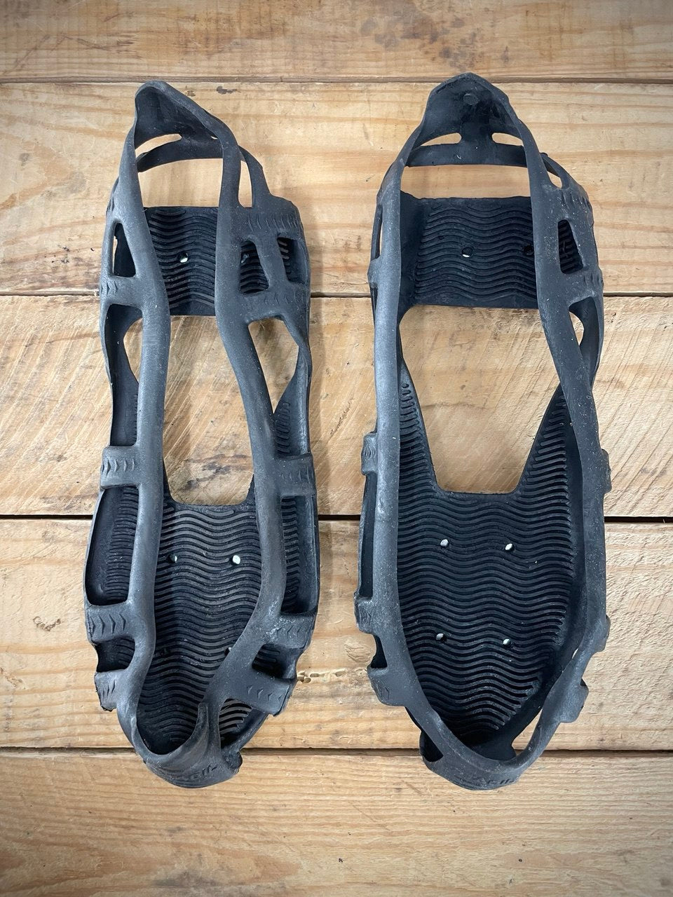 Ajattelin hetken että kannattaako mun laittaa nämä myyntiin jo nyt, mutta miksipäs ei - liukuesteet nimittäin loppuvat kaupoista talven tullessa, joten fiksu ostaa tämmöiset Yhdysvalloissa tehdyt ja tosi tymäkät kapineet etukäteen niin voi sitten juoda lumitöiden ohessa kaljaa ja naureskella perseelleen lenteleville. Tosi edulliset "uusiin" tämmöisiin verrattuna.
