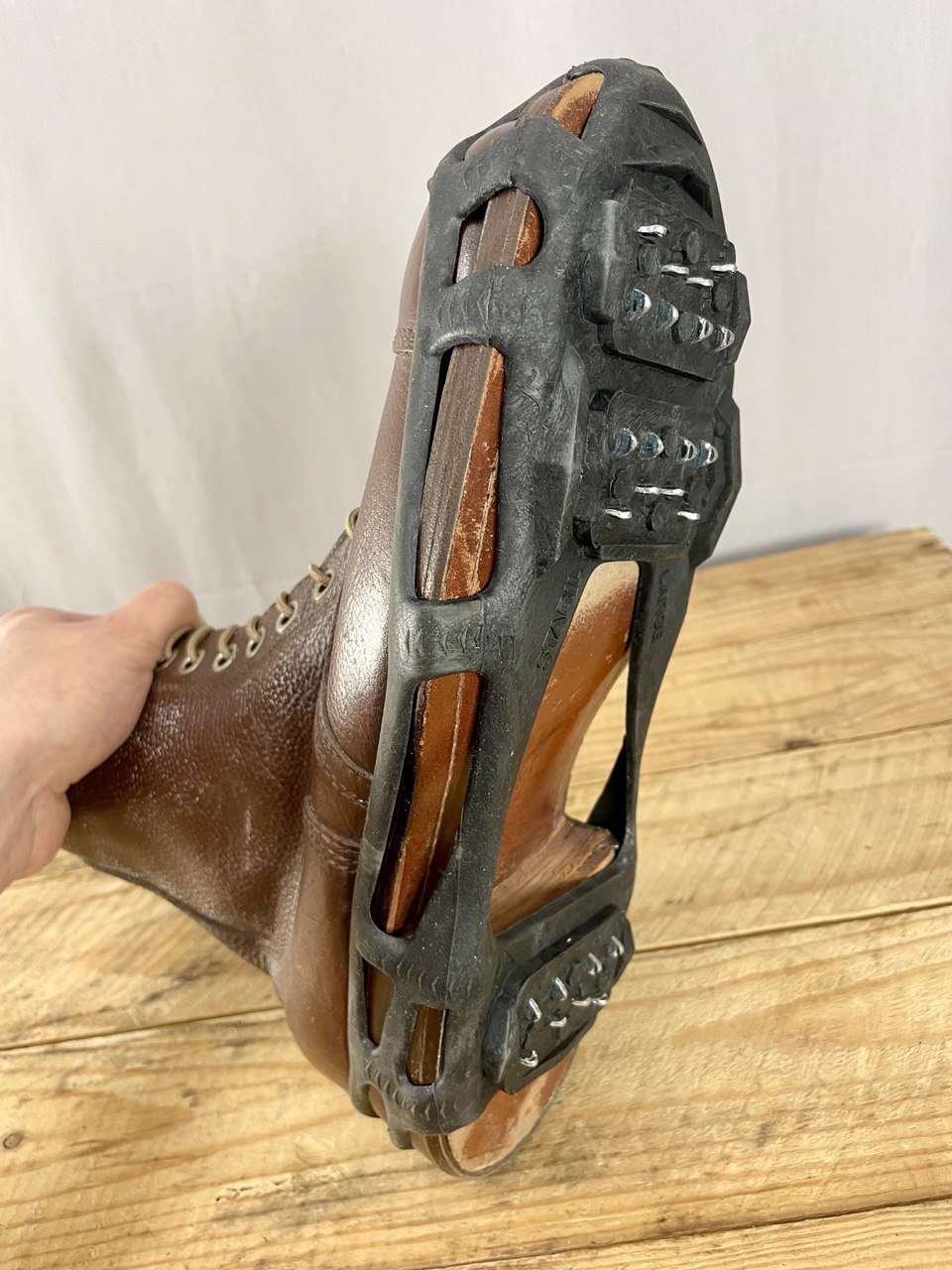 Eli kumista ja teräksestä valmistetut liukuesteet, jotka vedetään kengän päälle. Näissä piikit ovat runsaslukuiset, pitävät ja erittäin kestävät, toisin kuin markettien "yhden talven" rimpuloissa. Sopivat parhaiten jokapäiväiseen koirankusetuskäyttöön tai vaelluksilla pahojen paikkojen ylityksiin. Parhaiten ne istuvat ns. moderneihin kenkiin joissa ruiskuvalupohjat ym., mutta en voinut itselleni mitään kun otin tuotekuvat joidenkin antiikkipopojen kanssa.